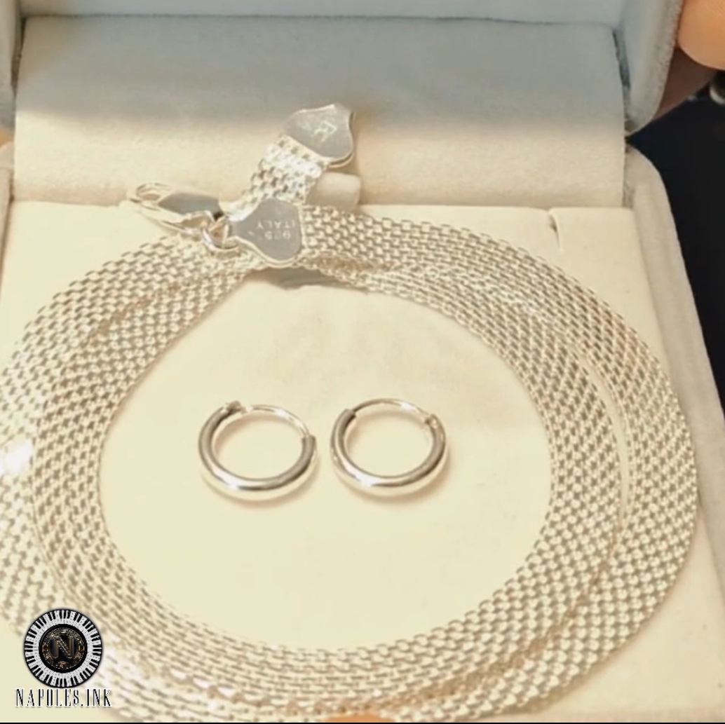Le entregamos una cadena tejido chinesca en plata 925 con candongas a juego... y el momento quedó grabado para siempre.