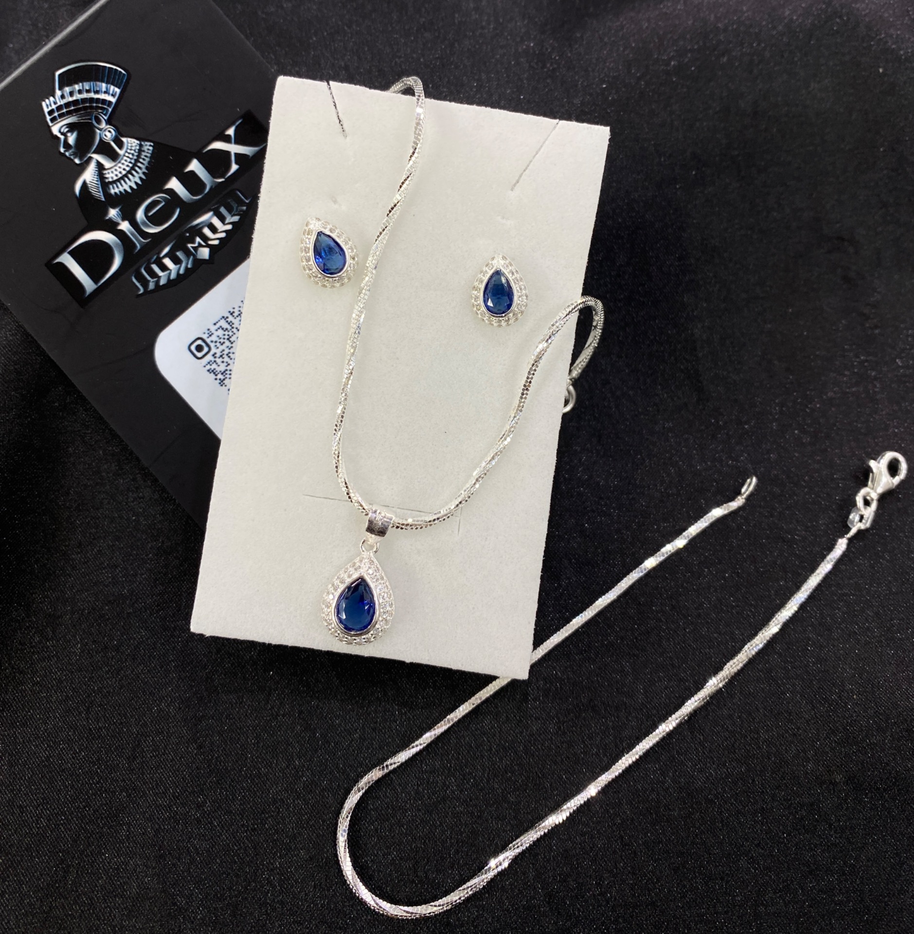 Topo y dije en forma de gita azulPlata ley 925Cadena y pulsera tejido cola raton especial plata ley 925