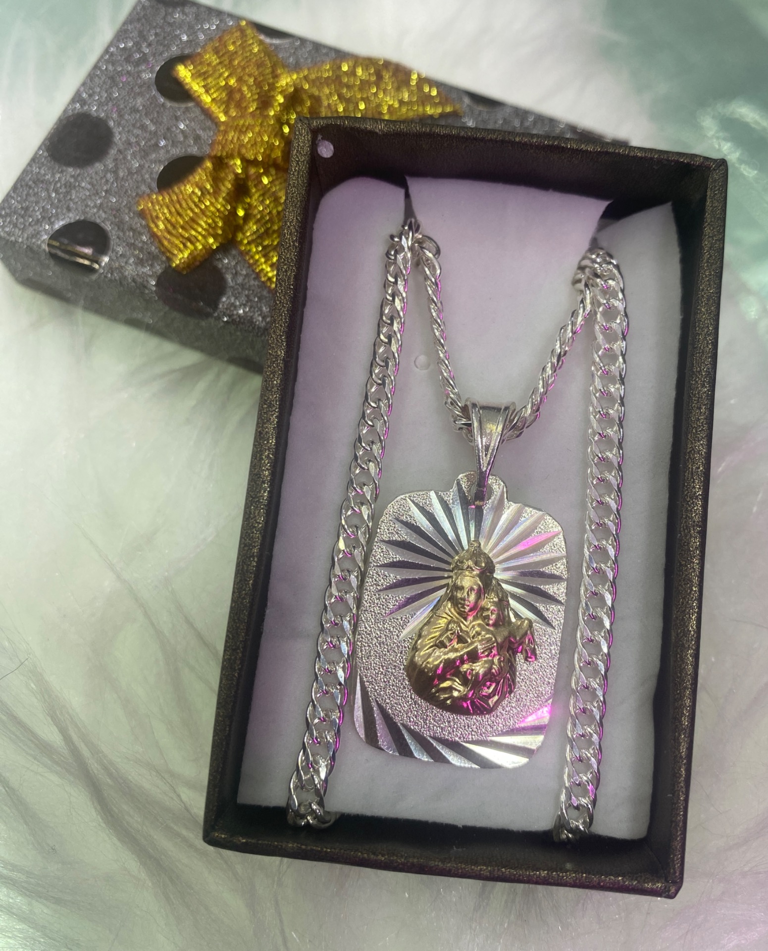 Cadena tejido doble oo plata ley 925largo 60cmdije grande con piedras oro y plata 925Virgen del carmen